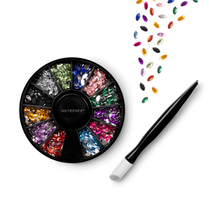 Mini Jewels are an ever-so-charming way to add a sparklingly lavish dimension to your manicure. Each set comes with 12 colours and an applicator stick, bundled together in a GelMoment organza sachet.